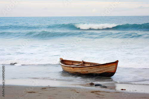 © Andrii , Naklejka premium Small Craft Battling Furious Waves