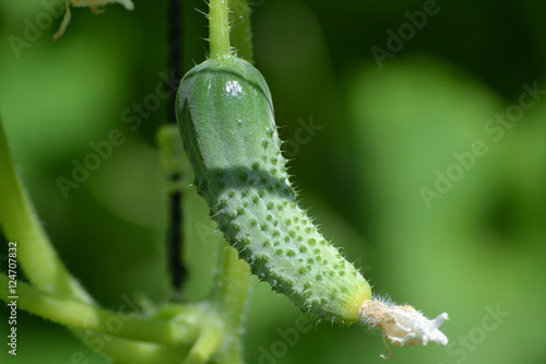 © ShooterAlex, Naklejka premium Small cucumber in the sun. Summer day.