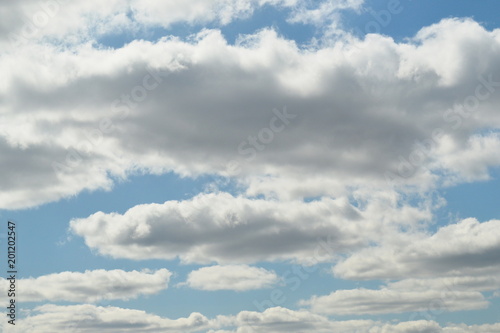 Obraz premium Small cumulus clouds are lit by the sun. The sun is not visible. Light coloured.
