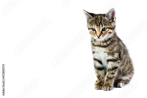 Obraz premium Small cute kitten on white background. with copy space