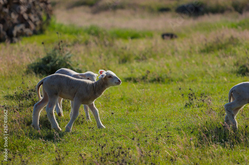 © nvphoto, Naklejka premium Small cute lamb gambolling in a meadow in a farm
