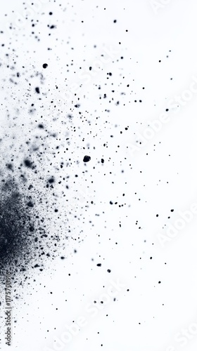 © olga_demina, Obraz premium Small dark ink drops are creating a dynamic splash on a clean white background, forming an abstract pattern with varying sizes and densities, ideal for graphic design or artistic projects