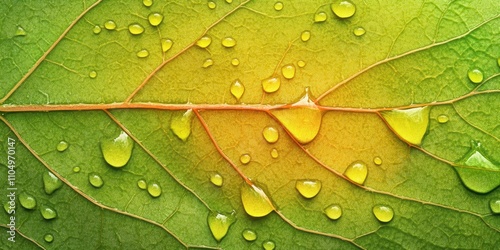© Tevarplus, Fototapeta premium Small droplets of water Tear-shaped leaf A detailed m