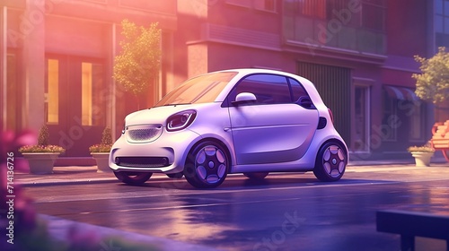 Fototapeta premium Small electric micro car. Due to the super compact size of the cars, Easily...