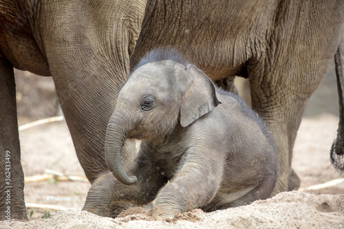 © Edwin Butter, Obraz premium small elephant near mother in natural habitat