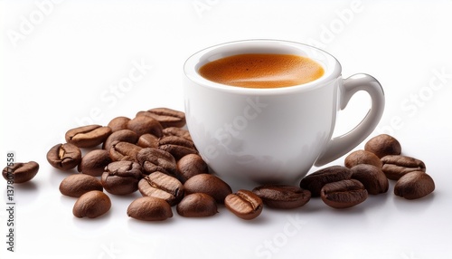© Aaron, Fototapeta premium small espresso cup with coffee beans isolated on white background