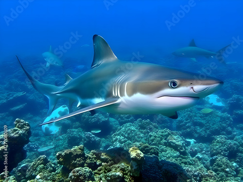 © JARVIS X, Fototapeta premium Small Fish with Ambitions of a Big Shark - Business Concept