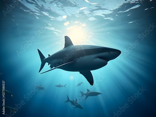 © JARVIS X, Fototapeta premium Small Fish with Ambitions of a Big Shark - Business Concept