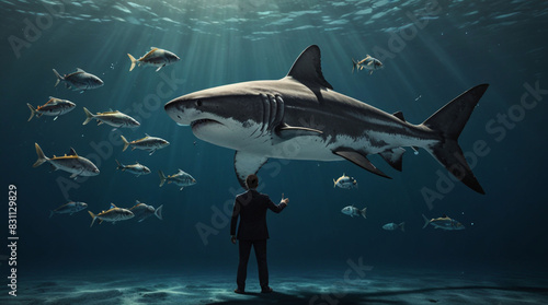 © Abdul, Fototapeta premium small-fish-with-ambitions-of-a-big-shark---business-concept