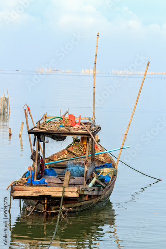 Fototapeta premium Small Fisherman Boat with Traditional Fishing Tools, Thailand