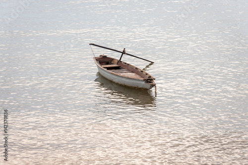 © Theerawat, Naklejka premium Small fishing boat at sunrise, Thailand