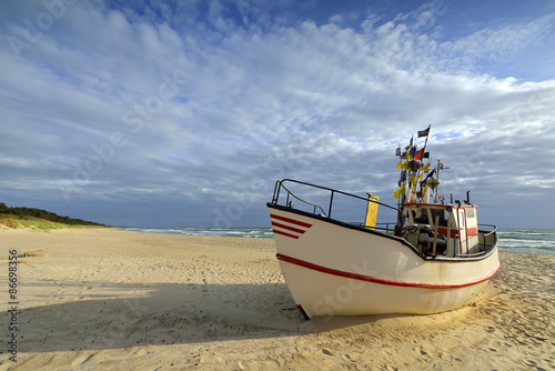 Fototapeta premium Small fishing boat, on the beach, of Baltic sea, Poland