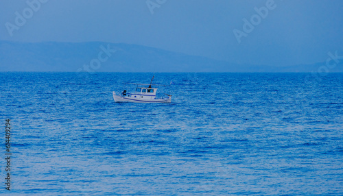 Fototapeta premium Small fishing boat sailing in Mediterranean sea