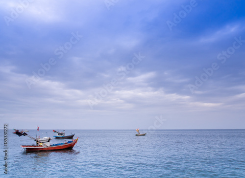 © Satakorn, Fototapeta premium Small Fishing Boats coastal drift after returning from fishing