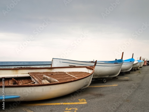 © Mor65_Mauro Piccardi, Fototapeta premium Small fishing boats lying on the shoreline