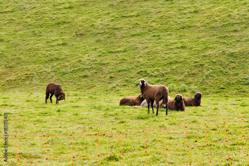 © Panama, Fototapeta premium Small flock of sheep grazing in a pasture