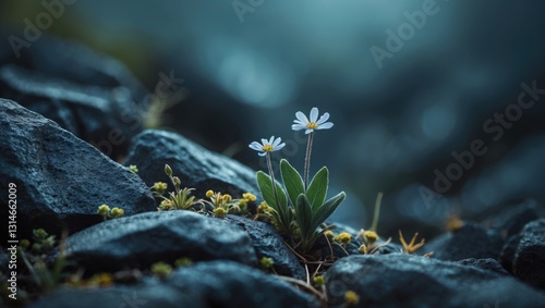 © Cyber Shutter, Obraz premium Small flower emerging among the rocks