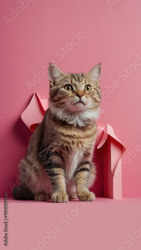 © Nemanja, Obraz premium Small Fluffy Orange Tabby Cat Looking Upwards