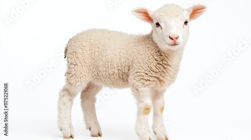 © pkproject, Fototapeta premium Small Fluffy White Lamb Stands on Clear Background in Minimal Studio Shot