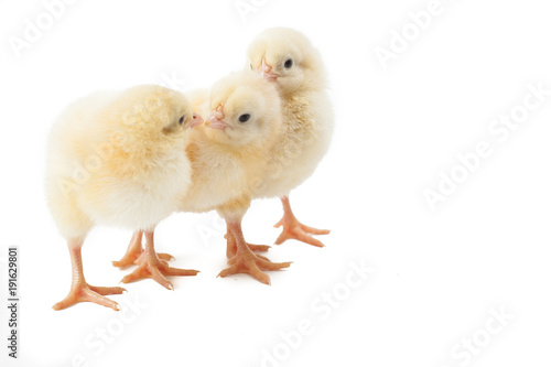 © BarbaraKrupa, Fototapeta premium small fluffy yellow Easter Chickens on a white background