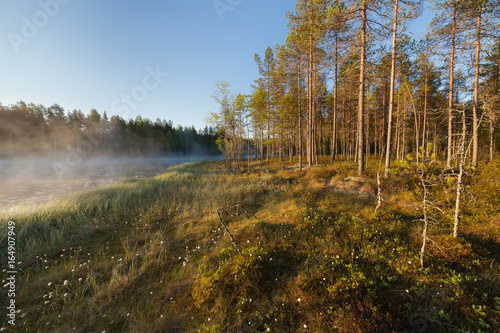 © Juhku, Obraz premium Small forest lake at sunrise