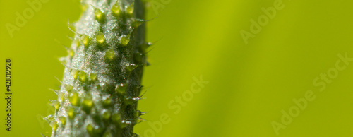 © schankz, Naklejka premium Small fruit of a cucumber on a plant.