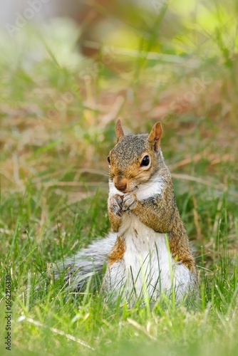 © Gregory Johnston, Fototapeta premium Small furry squirrel in the grass.