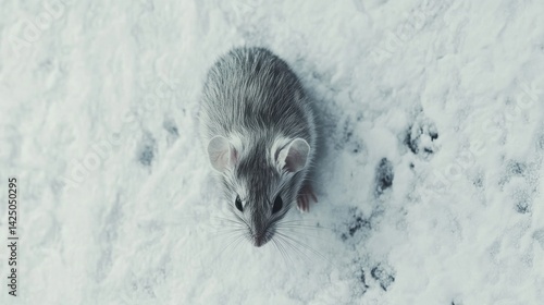 © ULFAITA, Obraz premium Small gray mouse on snowy ground