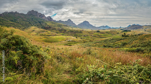 © Lubo Ivanko, Fototapeta premium Small green bushes and grass - typical jungle scenery near Andringitra massif in Madagascar
