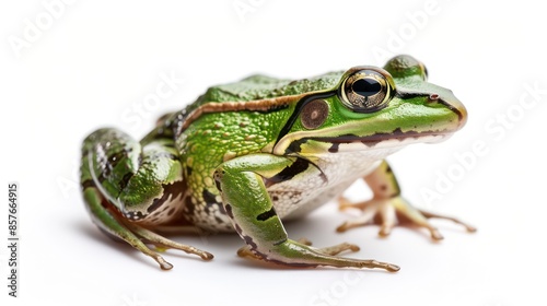 © Imsuniyah, Naklejka premium Small green frog isolated on white background.