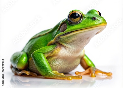 Naklejka premium Small Green Frog on a White Background - Cute Amphibian, Nature, Wildlife,...