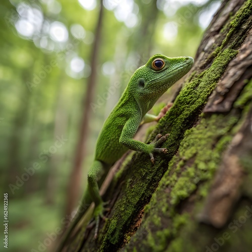 © Dibakar, Obraz premium Small Green Iguana Closeup