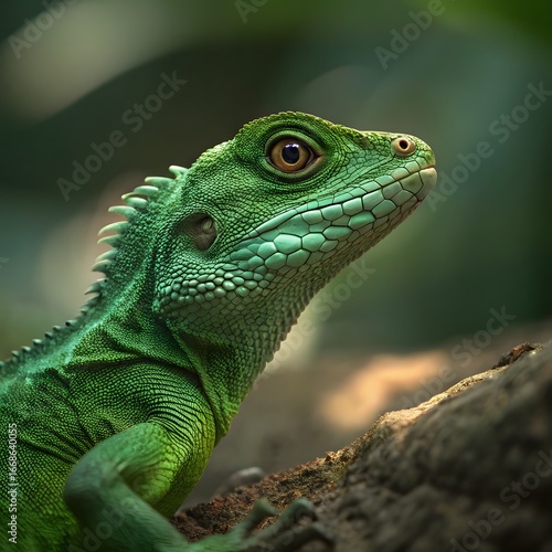 © Dibakar, Obraz premium Small Green Iguana Closeup