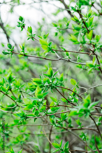 © Дарья Фомина, Obraz premium small green leaves of the Bush on nature background