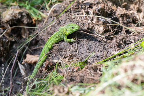 © Shchipkova Elena, Fototapeta premium small green lizard in the grass