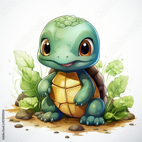© Nastassia, Fototapeta premium Small Green Turtle with Round Eyes Looking Playful