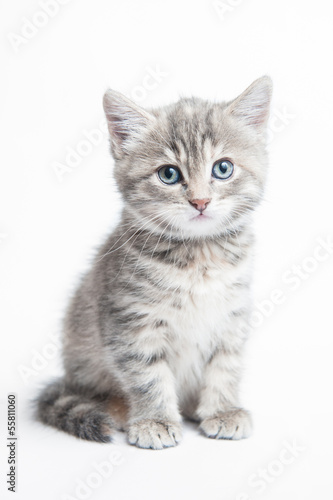 © Lev, Obraz premium Small grey striped kitten on a white background