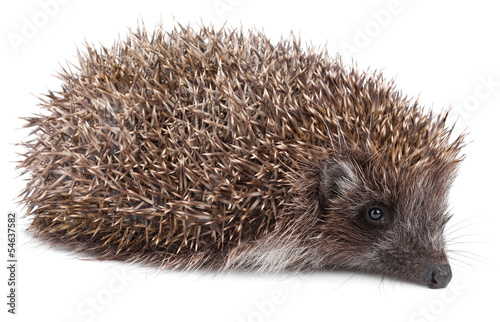 © Roman Samokhin, Obraz premium Small hedgehog in front isolated on white background