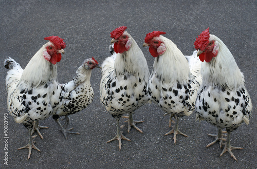 © meisterdragon, Fototapeta premium Small hen and four roosters