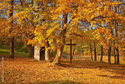 © Horváth Botond, Naklejka premium Small house in the forest in autumn
