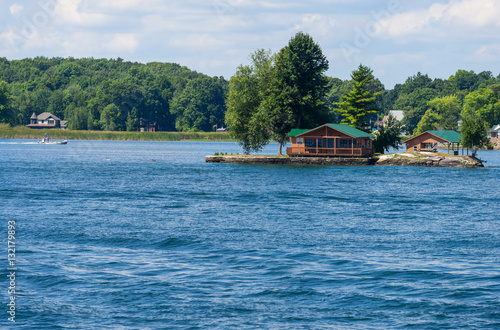 © Les Palenik, Fototapeta premium Small island with a cottage and a boathouse