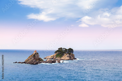 © evannovostro, Naklejka premium Small islands in Adriatic Sea. Petrovac bay, Montenegro