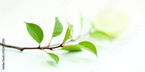 © PHOUVONG , Fototapeta premium Small isolated branch on dark white background, leaf, shadowy