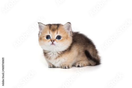 Fototapeta premium Small, kind kitten on short legs, looking up