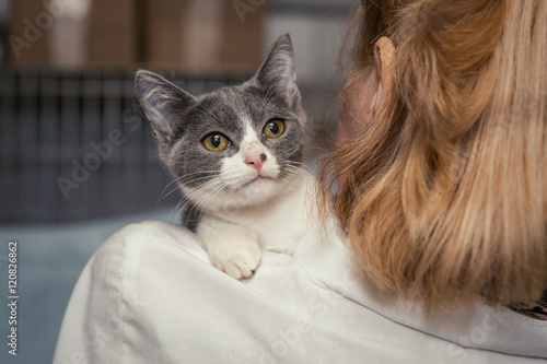 © Okssi, Obraz premium Small kitten into the hands of the physician