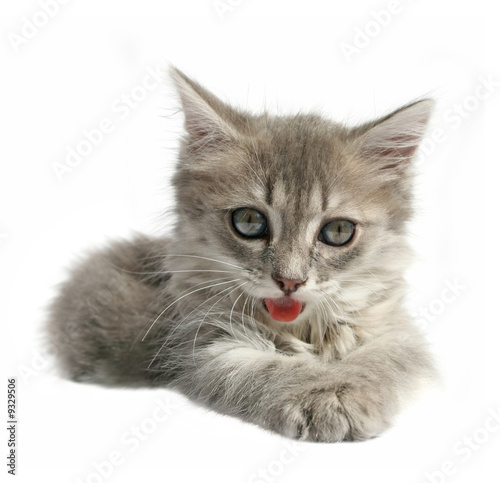 © Grigoriy Lukyanov, Obraz premium Small kitten on a white background.