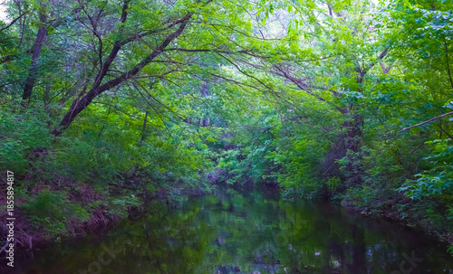 © Yuriy Kulik, Fototapeta premium small lake among green spring forest glade