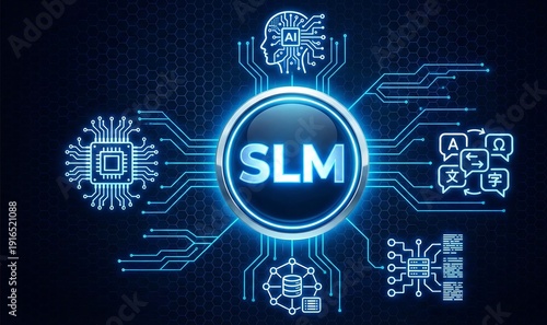 © Onetrick , Fototapeta premium Small Language Model SLM Concept with On-Device AI Processing, Local Machine Learning and Private Neural Network Interface