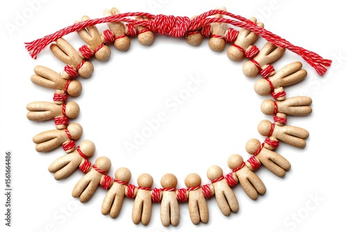 Obraz premium Small, light-brown figures, linked by red string, form a necklace