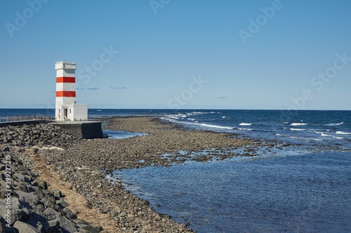 Fototapeta premium Small lighthouse on the tip of a peninsula